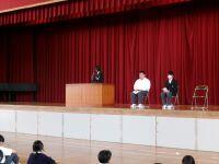 11月 4 日(火)に、1年生人権学習の一環として、車椅子バスケットボールで 2004 年に開催されたアテネパラリンピックに日本代表として出場された阪根泰子さんと車椅子バスケットボールクラブ KYOTO UPS の東武志さんを講師にお招きし、ご講演いただきました。また、生徒たちは競技用車椅子に乗り、実際に車椅子バスケットボールを体験しました。