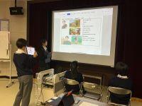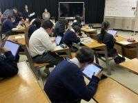 11月26日(水)に、今年度第3回目となる泉川中校区小中合同授業研究会(泉川中・加茂小・恭仁小・南加茂台小合同の教職員研修)を本校で開催しました。授業内容は1年生の英語で、帯学習として毎時間授業のはじめに取り組んでいる「AIリーディング」(生徒一人一台端末を活用した音読活動)と「リテリング(retelling)」(まとまりのあるストーリーを読んだり聞いたりした後に、その内容を知らない人に英語で即興的に語る活動)でした。授業参観後には、「生成AIをはじめとするICTツールの利活用」について研修を行いました。
