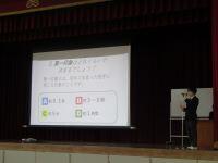 11月 4 日(火)に、1年生人権学習の一環として、車椅子バスケットボールで 2004 年に開催されたアテネパラリンピックに日本代表として出場された阪根泰子さんと車椅子バスケットボールクラブ KYOTO UPS の東武志さんを講師にお招きし、ご講演いただきました。また、生徒たちは競技用車椅子に乗り、実際に車椅子バスケットボールを体験しました。