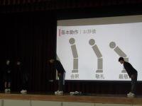 11月27日(木)に3年生を対象に進路学習の一環として「面接マナー講座」を実施しました。京都府立木津高等学校情報企画科の生徒(7名)を講師として迎え、社会人として知っておきたい所作やマナーについて学びました。3年生は、間近に迫る高校入試に向けて、面接練習にも取り組んでいきます。