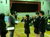 本校生徒会では、各委員会において12月にキャンペーンを行いました。図書委員会では、図書室利用及び読書量を増やすことを目的として、「けしラミキャンペーン」を実施しました。キャンペーン期間内に本の貸出が多かった生徒には、「本のしおり(自分の好きな図柄をラミネートしてしおりにしてもらえるサービス)」か「特製の消しゴム」をプレゼントしました。また、健康安全委員会では、毎週月曜日の朝学活の時間帯に、運動不足になりがちな冬季における健康保持・体力アップを目的に、「筋肉モリモリキャンペーン」を実施しました。短時間ではありましたが、体つくり運動を学級のみんなで楽しみながら取り組みました。