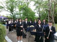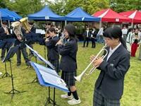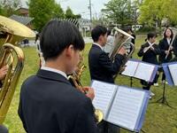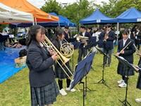 4月29日(水・祝)、加茂駅前広場で「第24回木津川市かも野外フェスタ2026」が開催され、吹奏楽部が出演しました。2・3年生13人による息の合った演奏で3曲を披露し、会場には豊かな音色が響き渡りました。多くの観客が演奏に聞き入り、会場は一体感に包まれました。