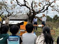 少し山道を歩き、柿農園に着きました。しぜに囲まれて立派に育った柿がたくさん実っています。