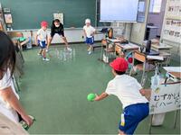 かも博とは、6年生が1年生に遊びや学習などを教えながら、校内をめぐるイベントです。体育館や教室、校庭とさまざまなブースが用意されていました。6年生と1年生でペアになって、笑顔でブースを巡っていました。
