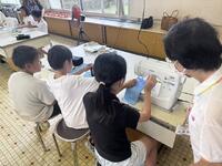 小学生にはあまり馴染みのないミシンですが、地域の方々に教えていただき、使い方を学んでいます。「めっちゃ上手くできた」と喜ぶ姿も見られました。ご協力いただきありがとうございます。