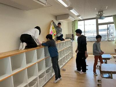 6年生が進んで入学式の準備をする姿。