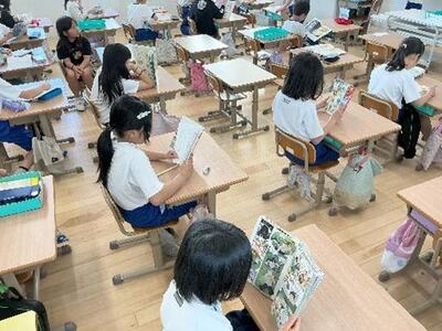 木津小学校では、毎朝、読書タイム(8:25~8:35)を設けています。