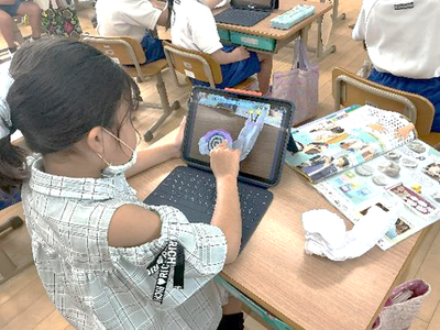Ipadを使って、色をつけていくとあっという間にいきものの登場です。