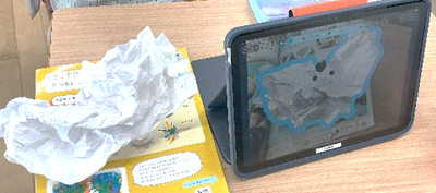 2年図画工作科では、くちゃくちゃにした紙からいきものを見つけていました。