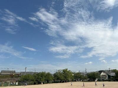 低学年から中学生まで、木津小学校の運動場はみんなの憩いの場ですね。