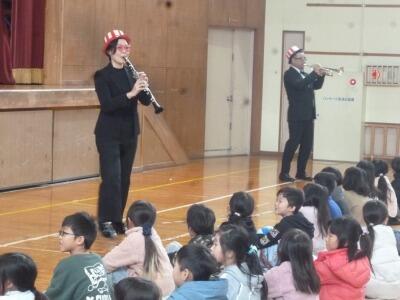 子ども達が使うソプラノリコーダーはもちろん、とても小さなリコーダーや珍しい形のリコーダーも実際に吹いて演奏をしていただき、大満足の子ども達でした。