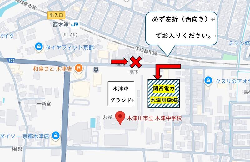 ・お車を使用される場合は、関西電力木津訓練場を臨時駐車場としてお借りできましたのでご利用ください。
