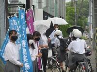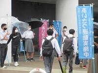 梅雨らしい天気の中、生徒の爽やかなあいさつで1日がスタートしました。