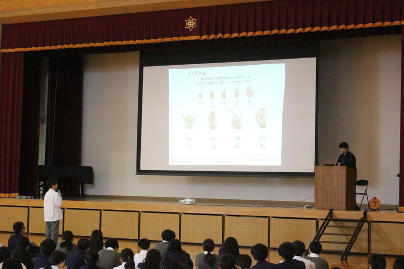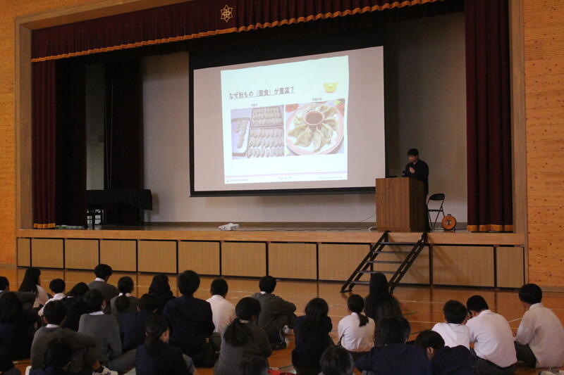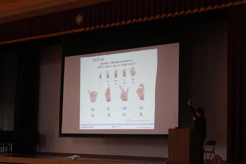 10月29日(木)京都名誉友好大使である中国出身のホウ イシンさんをゲストに迎え、中国の文化や言葉、日本との文化の違いなどを教わりました。国の地形や食文化、経済のお話を中心にしていただき最後にミニゲームを行いました。生徒たちは今回の学びを通して、国際的な視野を広げるとともに異文化への理解を深めることができました。