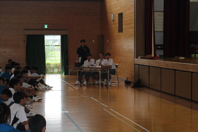 体育大会の活動に向けて、昼食後にクールダウンを行い熱中症予防および心身の休息をとり、午後の活動で集中力を向上させる目的で生徒会中心に行っています。