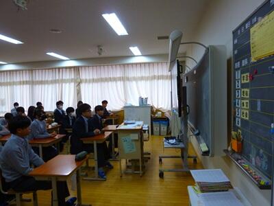 グループディスカッションの後、前方のモニターに意見を映写して発表しました。