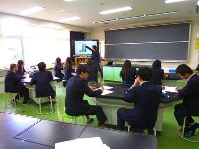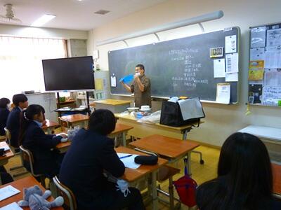 3年生の家庭科で研究授業が開催され、本校 藤田教諭の授業を、他校の先生方が見学に来られました。