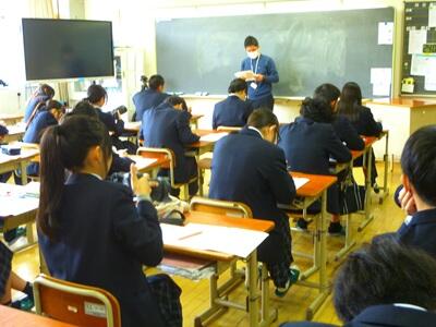 2月26日(木)に伝達表彰を行いました。各種大会やコンクールにおいて優秀な成績を収めた生徒の皆さんに、校長先生より賞状が手渡されました。オンラインでの実施となりましたが、他の生徒の皆さんは教室から温かい拍手を送っていました。今後もそれぞれの目標に向かって努力を続けてほしいと思います。