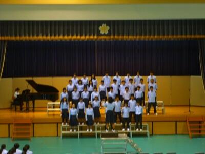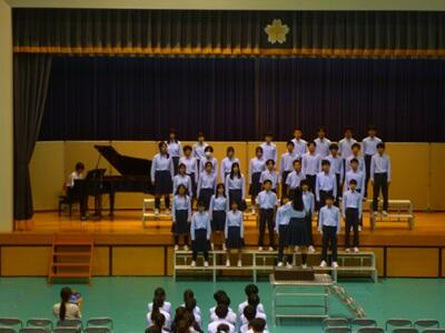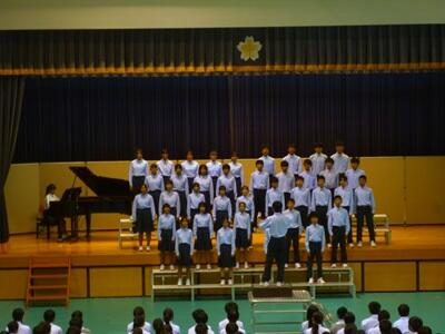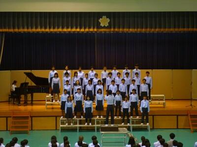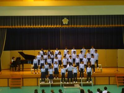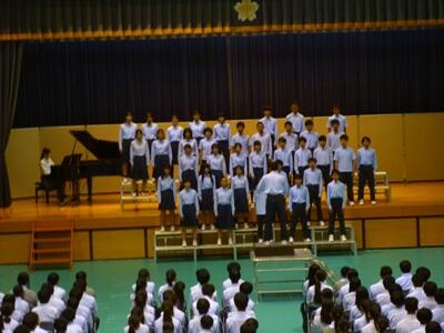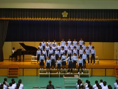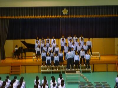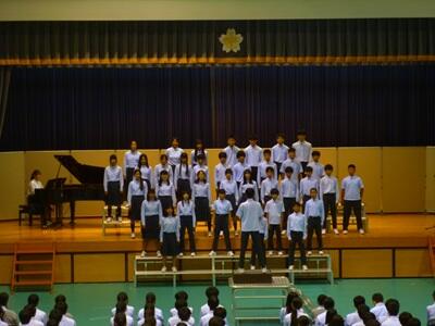 10月3日(金)に学習発表会を実施しました。本校体育館で合唱コンクール、校舎1階会議室、3階美術室で展示見学を行いました。閉会式では吹奏楽部が演奏を披露しました。合唱コンクールではどのクラスも練習の成果を発揮し、心をひとつにして素晴らしい歌声を響かせてくれました。仲間と協力しながら目標に向かって努力する姿には、成長と感動が詰まっていました。当日は多くの保護者の方にご参観いただきありがとうございました。