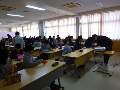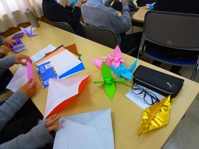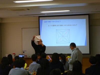 1月28日(水)国立舞鶴高等専門学校より、講師の先生をお招きし、1年生を対象とした出前授業を実施しました。折り紙で鶴を作成することを通して、実際に手を動かしながら図形の性質を理解することができました。