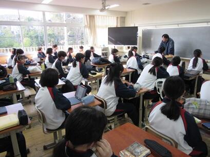 3年生の家庭科で研究授業が開催され、本校 藤田教諭の授業を、他校の先生方が見学に来られました。