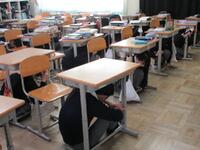 木津川市では、阪神・淡路大震災が発生した日に合わせて、シェイクアウト訓練を行っています。本校でも、いつ、どこで地震に遭遇しても、自分の身をしっかり守れるように「ドロップ(姿勢を低く)」「カバー(頭・体を守る)」「ホールドオン(揺れが収まるまでじっとする)」の基本的な動作を確認しました。