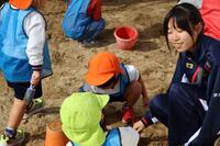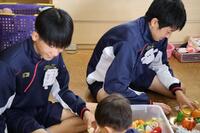 3年生の家庭科の授業の一環で、保育園訪問(1組)をしました。事前の授業では、幼児の心身の発達について学んだり、訪問した際につける名札を作ったりして準備を進めてきました。今日の訪問は2時間という短い時間でしたが、幼児たちのパワーに負けないよう、全力で幼児に触れ合った実りの多い2時間となりました。