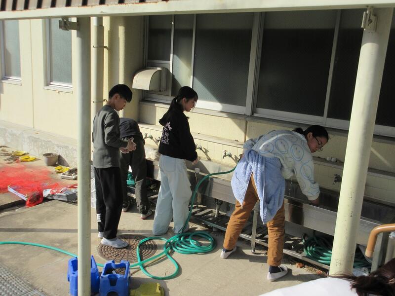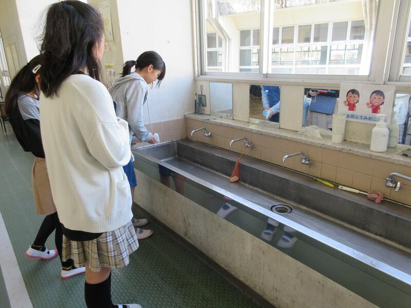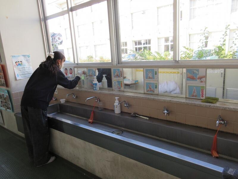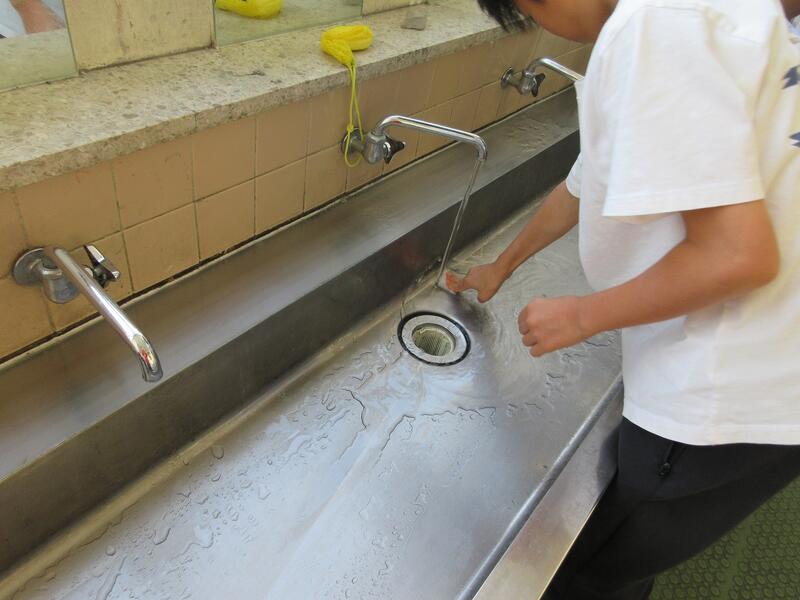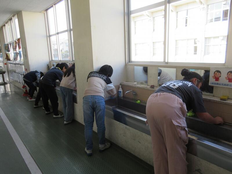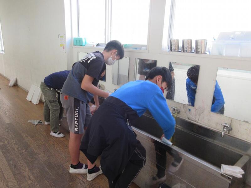 校舎内の洗面台を学年みんなで、分担してきれいにしてくれました。