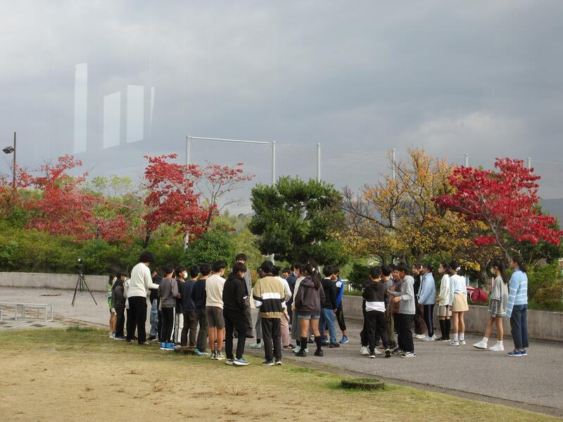 クラス写真を撮る前のひととき。どこに並ぶんだっけ?