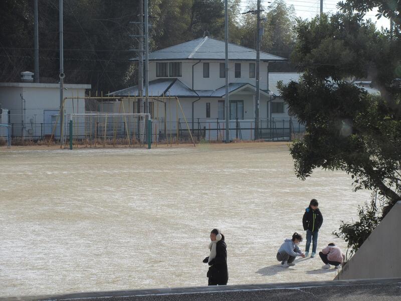 2年生が運動場で体育ができるくらい、昼前にはすっかり雪も溶け・・。