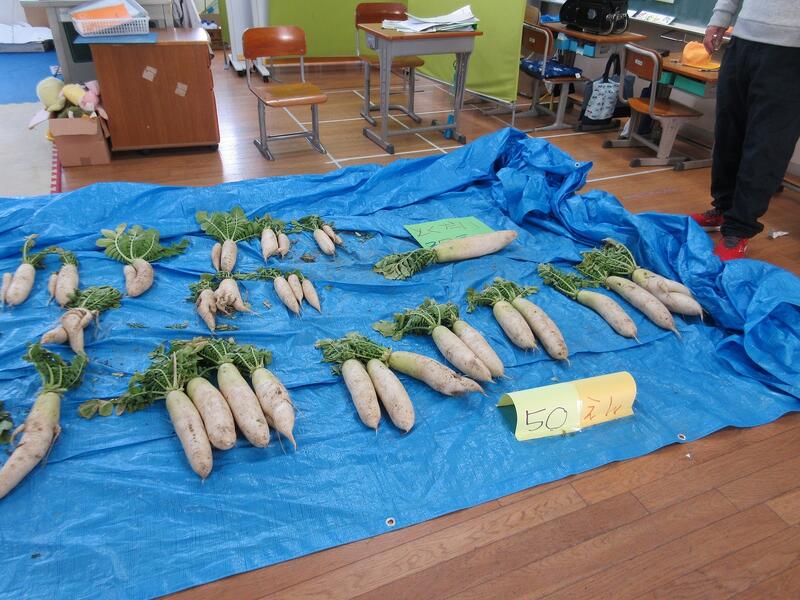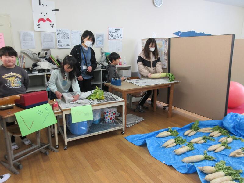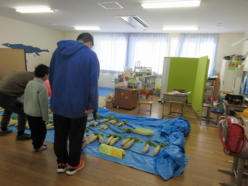 みのり学級では、毎年冬の大根収穫に合わせて大根を販売学習も行っています。お客さんは先生たちです。