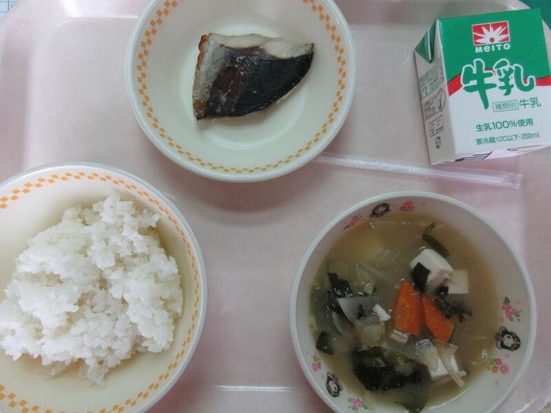 今日の献立 ごはん あじの塩こうじ焼き 野菜の味噌汁 牛乳 でした
