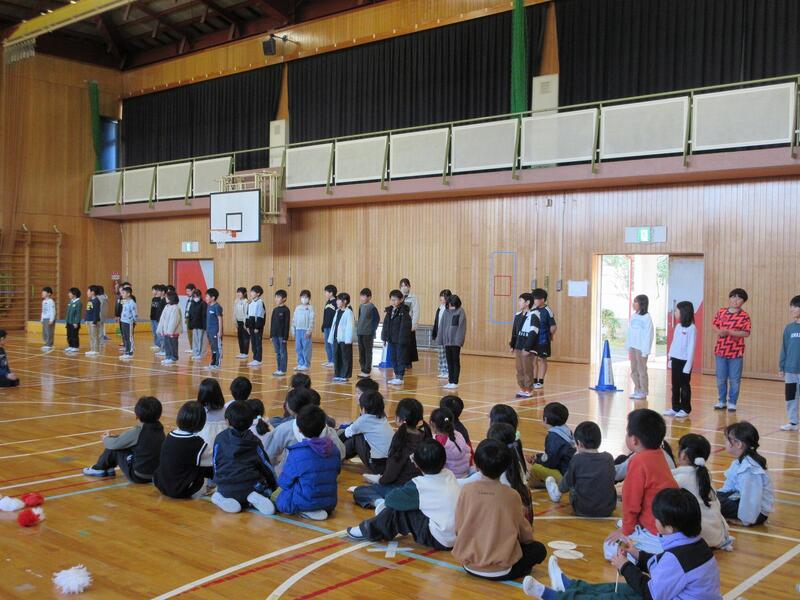 全校で歌うときの振り付けや、発表の位置など、5年生の司会に合わせて全体の流れを確認しました。