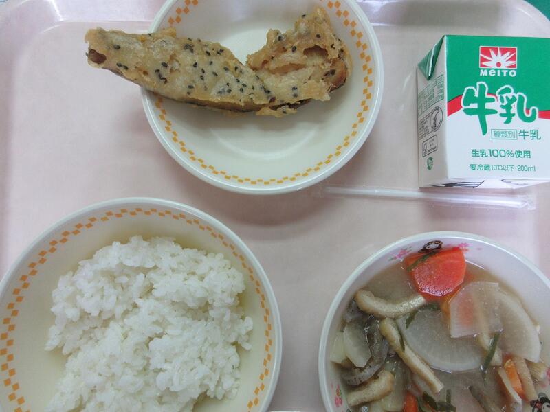 今日の献立 ごはん にしんのごま揚げ けの汁 牛乳 でした