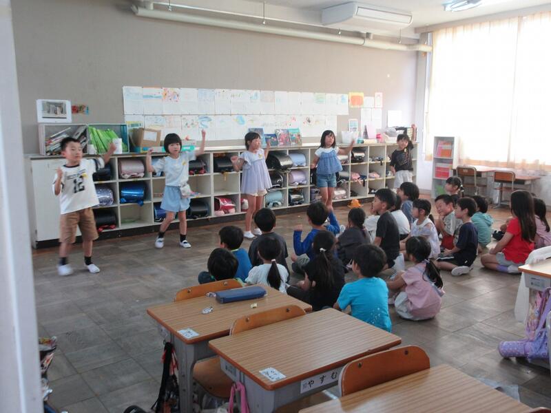 1年生も、2年生もお手本を見なくても、踊れています。いい顔です。