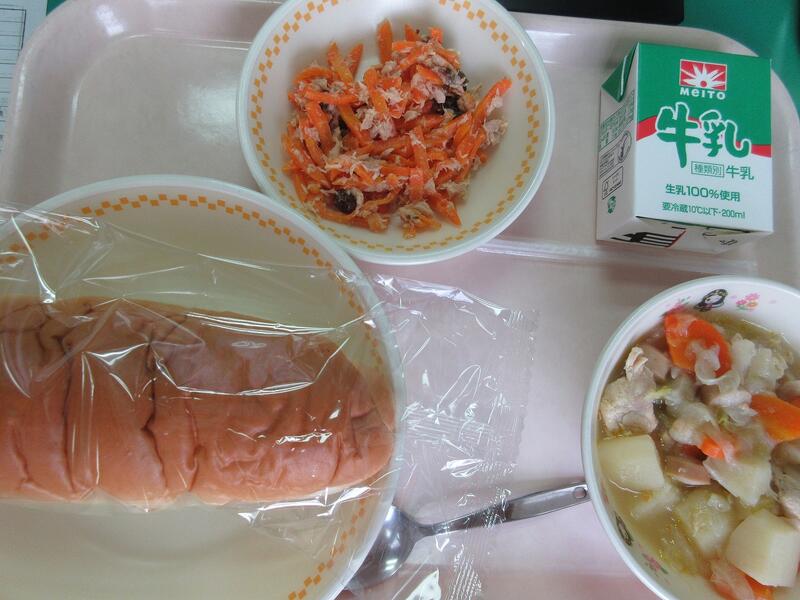今日の献立 あじつけパン ポトフ キャロットラペ 牛乳 でした