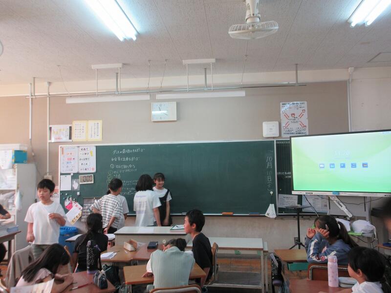 4年生は、演技の中で踊りを工夫する箇所について相談していました。「どんな振付にしようか?」班ごとに話し合っています。どんな展開になるのかな?楽しみです。