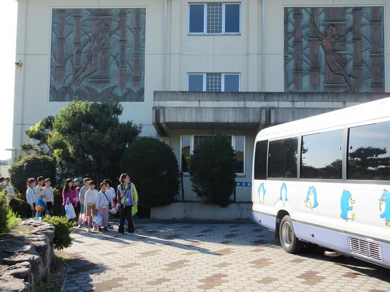 低・中・高学年ブロックごとにスイミングスクールで学習します。バスに乗っての移動です。