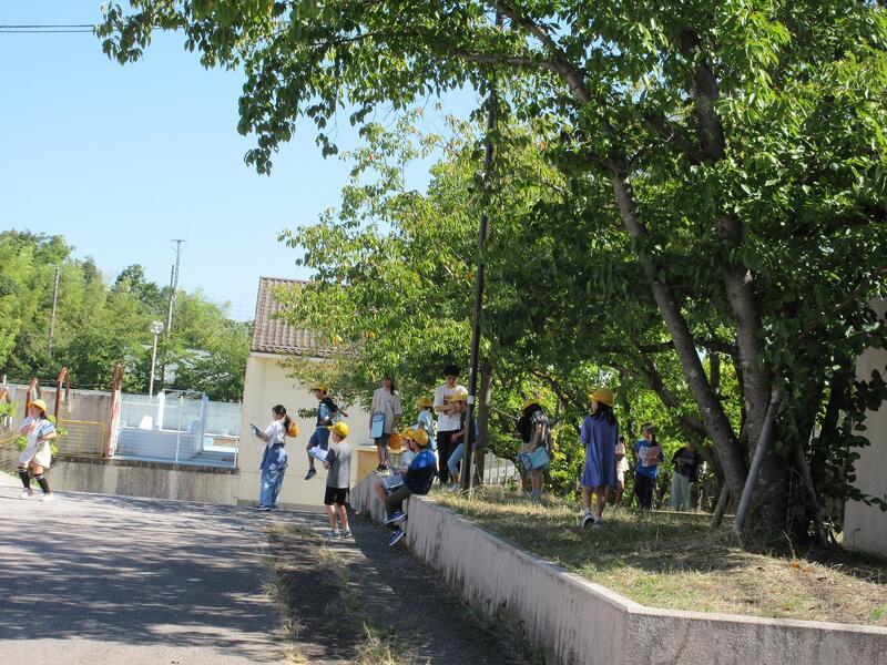 4年生が学校内の自然観察を行っていました。