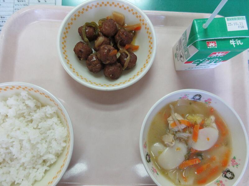 今日の献立 ごはん 肉団子の甘酢あんかけ トックスープ 牛乳 でした