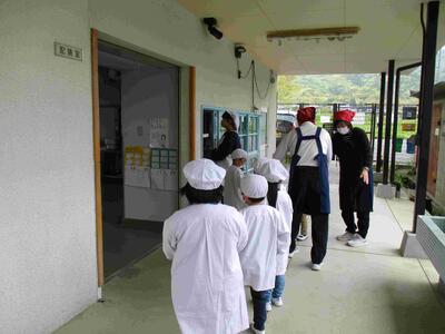 配膳室に給食を取りに行きました。