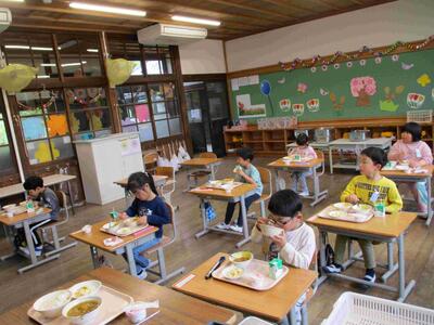 1年生 給食始まりました!