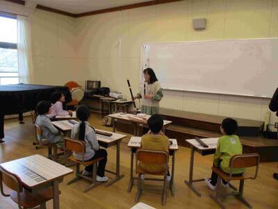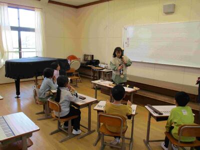 1年生を迎える会に向けて、全校で歌の練習をしました。