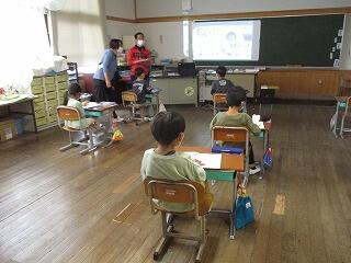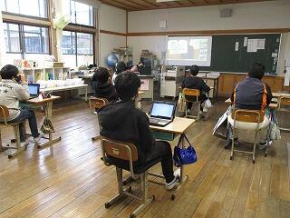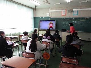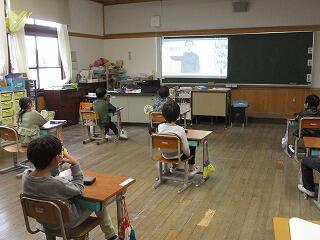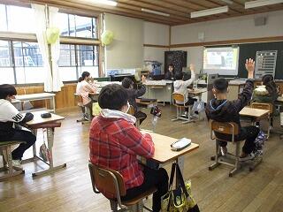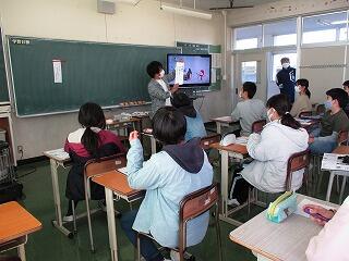 3月15日(火)の3校時に、広島県の仁賀小学校の5,6年とオンラインで交流をしました。6年生が学校や校区の紹介をして、4~6年生が〇✕クイズをしました。遠く離れていても、オンラインですぐにつながることができ、顔も見ながらのステキな交流となりました。