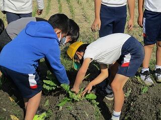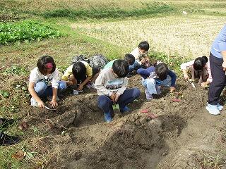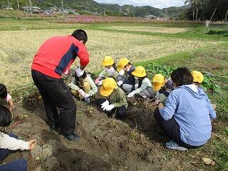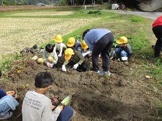 11月8日(月)の4校時に、1,2年生が1学期に植えたサツマイモを掘りました。土が硬くてなかなか上手に掘り起こせないのですが、それでも根気よく丁寧に掘って、サツマイモが顔を覗かすととっても喜んでいました。