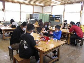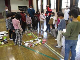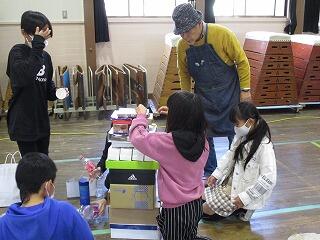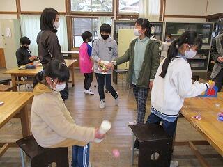 2月8日(火)、今年度最後のクラブ(スポーツ・創作)を前回のグループを入れ替えて行いました。スポーツは講堂でソフトボールバトミントンを、創作は紙コップを使ってオリジナルけん玉を作りました。