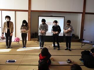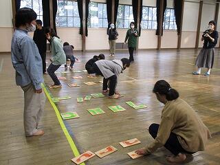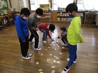 音楽クラブは、和歌を詠むリズムを体感しながら百人一首に挑戦しました。下の句を覚えている児童も、詠み上げられるまで集中して聞き入っていました。