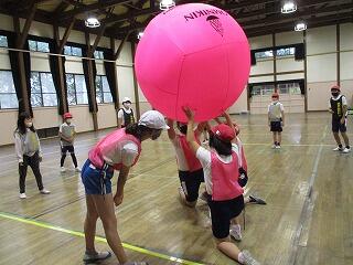 11月9日(火)、今日の6校時は久しぶりのクラブ活動です。スポーツは「キンボール」というニュースポーツに挑戦です。4人1チームになって3チームに分かれて対戦しました。色を指定して打ち上げられたボールを色指定のチームが落とさないようにレシーブできるかどうかでポイントがつきます。相手のいない空間めがけてサーブを打つこと、レシーブ側は隙を与えないように守ることが勝利のポイントです。チームで力を合わせて頑張りました。