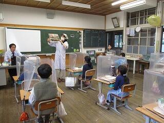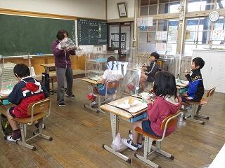 1月17日(月)からの一週間は、学校給食週間です。その一環として、18日(火)に乾栄養教諭に来校いただき、1,3,5年生が食育指導をお世話になりました。1年生は正しいお箸の使い方、3年生は魚の上手な食べ方、5年生は和食の良さについて学びました。1年生は正しいお箸の持ち方で豆をつまんだり、3年生は模型のお魚を使って手べる手順を、5年生は知っている和食を出し合いながら和食の良さを考えたりして学びを深めました。これから、2年生は野菜の秘密、4年生はおやつの食べ方、6年生は京都の食文化について学びます。
