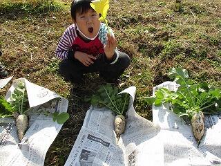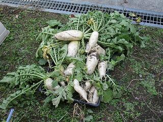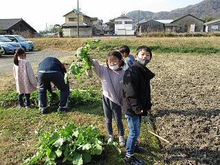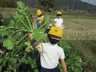 11月16日(火)、3,4年生が種を蒔いて育てた大根の収穫をしました。今年の大根は、下に伸びずに二股や三股になった大根がたくさんとれ、子どもたちは形の面白さに思わず微笑んでいました。収穫した大根は家に持って帰って調理してもらいます。